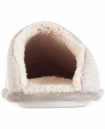A ribbed-knit upper and a super-soft sherpa lining bring warmth and comfort to these slide-on slippers from Isotoner Signature.