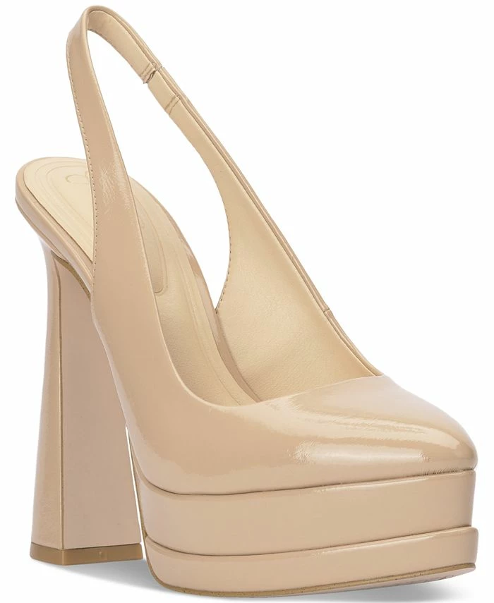 - Almond-toe slip-on slingback platform pumps