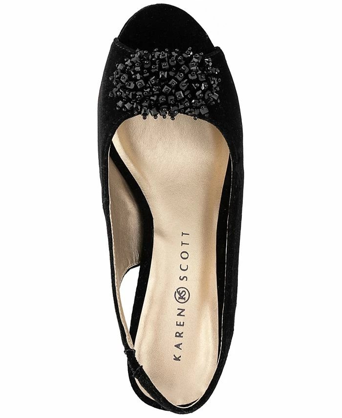 Shimmering metallics and a rhinestone brooch bring sparkling elegance to dressy looks in these Breena platform pumps from Karen Scott.