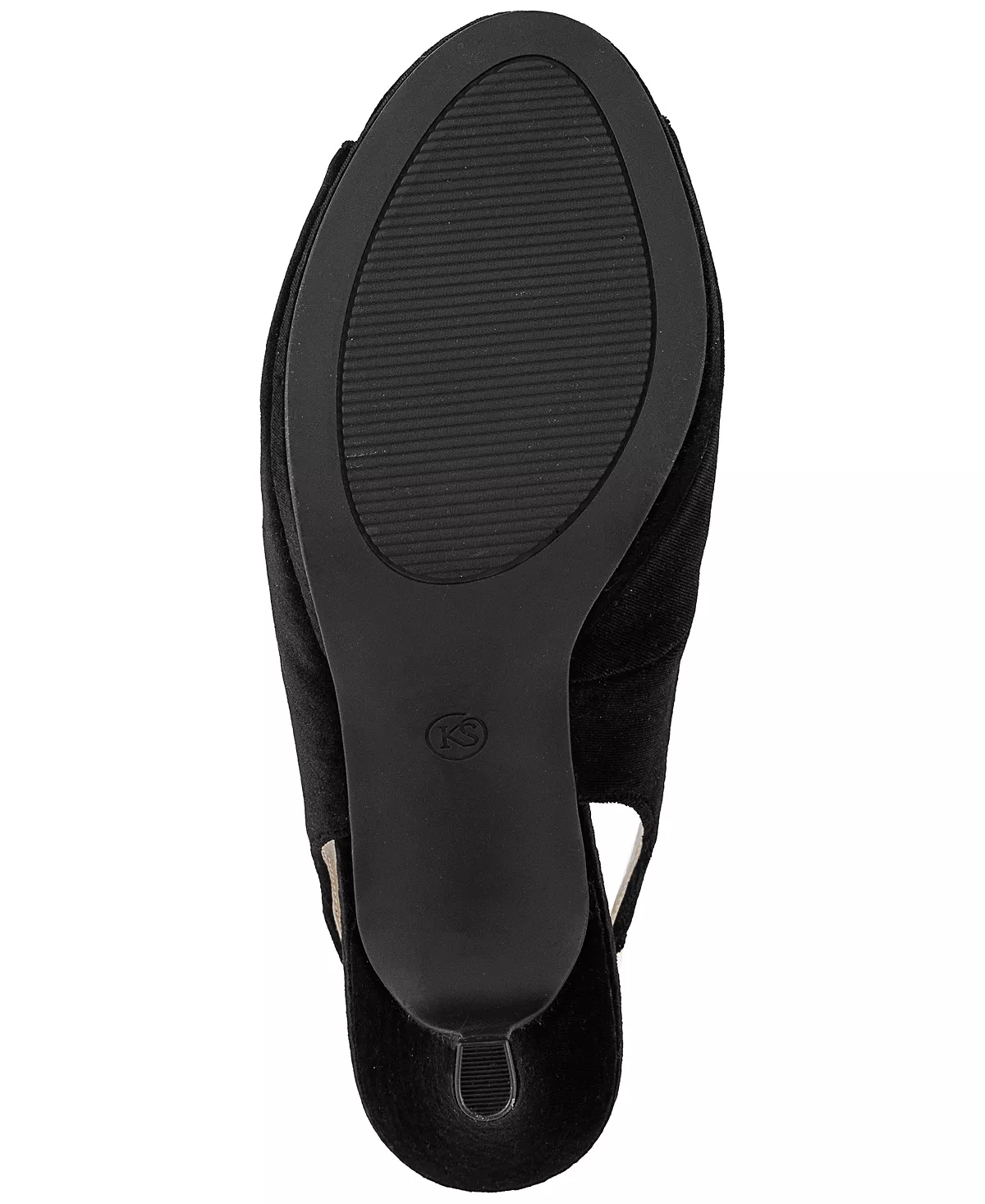 - Round peep-toe slip-on slingback platform pumps