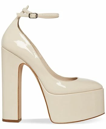 Dressy looks go sky high in the towering platform heels and elegant ankle straps of Steve Madden’s Skyrise pumps.