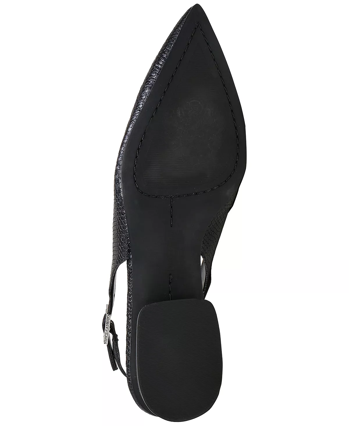- Pointed-toe slip-on slingback flats with adjustable buckle closure